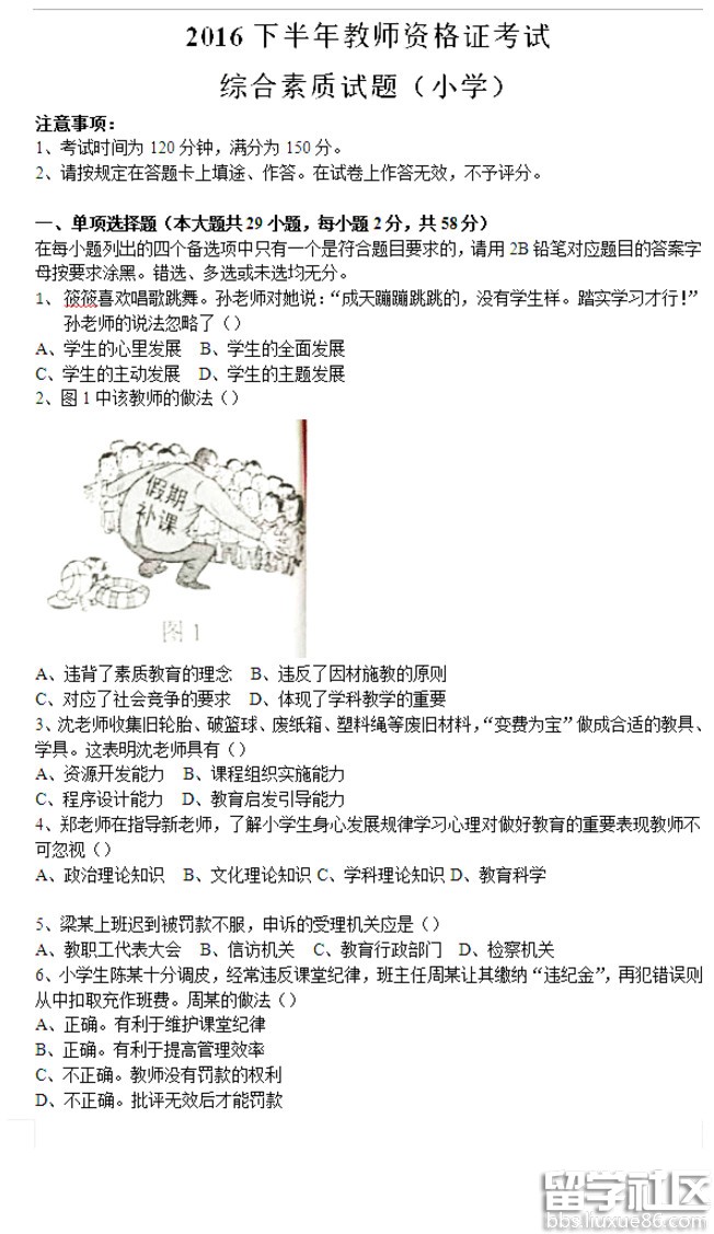 教師資格小學綜合素質(zhì)2016下半年真題及參考答案