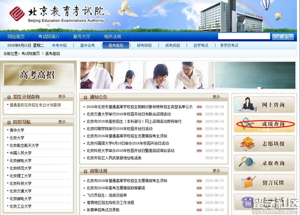 2016年北京高考成績(jī)查詢系統(tǒng):http://www.bjeea.cn/?