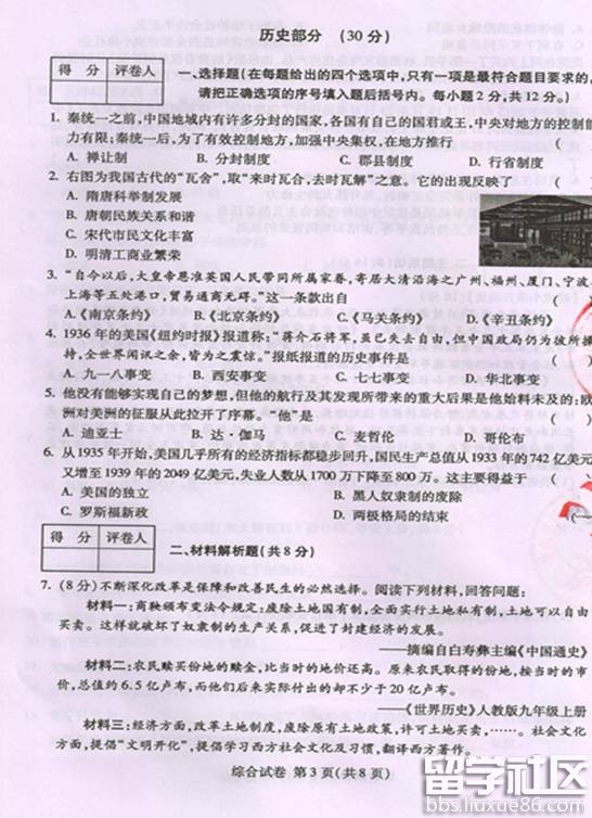加油吧,下面是由出國留學(xué)網(wǎng)整理的2016年甘肅平?jīng)鍪兄锌細(xì)v史試題及答案,歡迎閱讀。