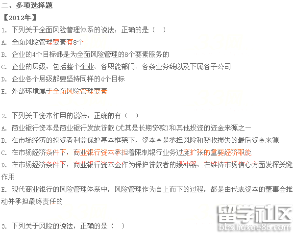 2016銀行從業(yè)資格考試風(fēng)險管理真題及解析(1)