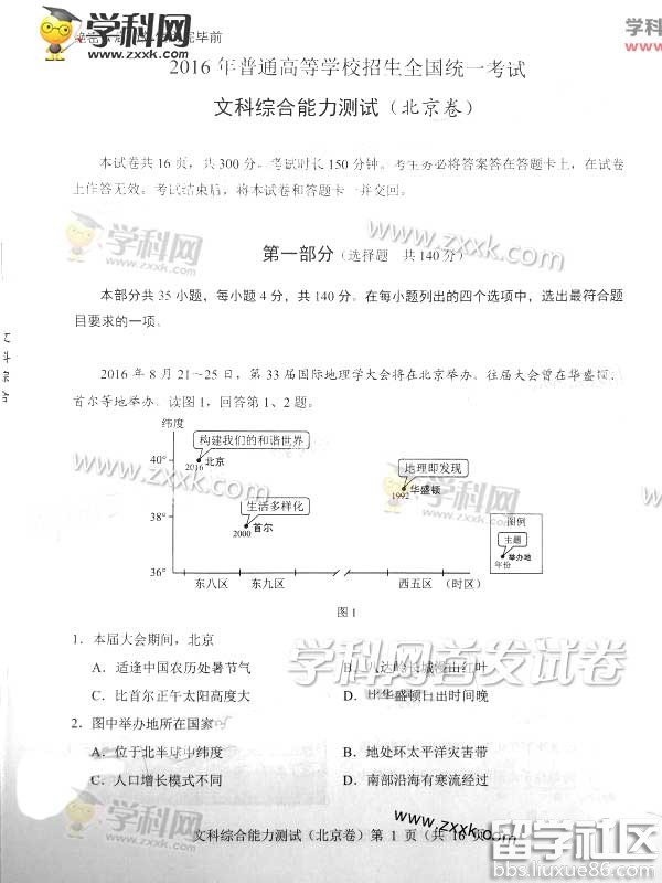 2016年高考考試已經(jīng)圓滿的結(jié)束了,以下2016北京高考文綜試題(文字版)由出國留學網(wǎng)高考欄目整理而出,希望每一個考生都能取得理想的成績!