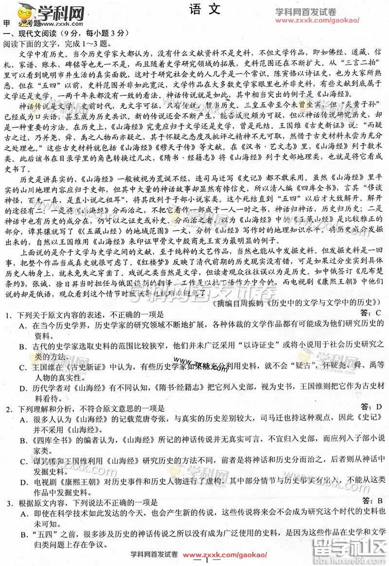 2016年眉山高考語文答案已公布