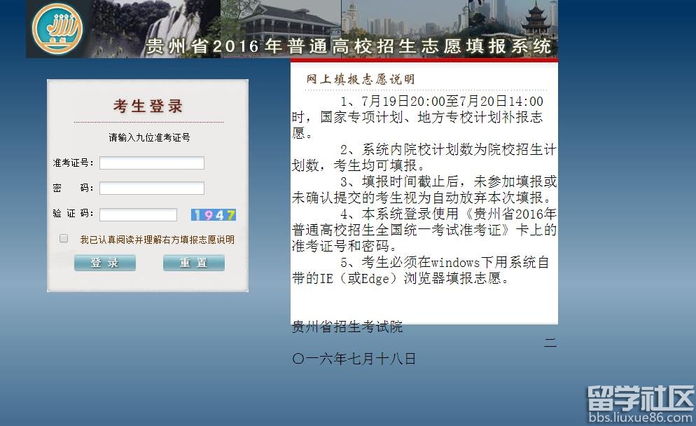 二、本次補報設(shè)置6個平行志愿,網(wǎng)上補報志愿時間為7月19日20:00至20日14:00,考生憑準考證號和密碼登錄“貴州省2016年普通高校招生志愿填報系統(tǒng) ”進行網(wǎng)上補報志愿。超過規(guī)定時間后,補報志愿系統(tǒng)將自動關(guān)閉。