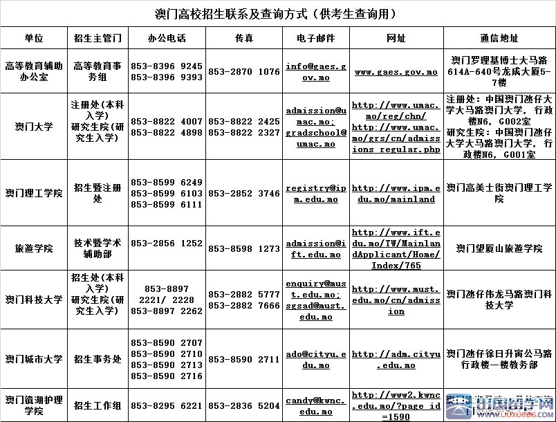 澳門高校招生聯(lián)系方式及網(wǎng)址匯總