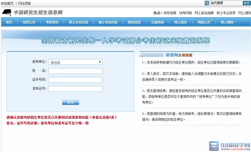 2016中國石油大學(xué)(北京)考研成績出來了,出國留學(xué)網(wǎng)考研成績查詢?yōu)榇蠹姨峁?016中國石油大學(xué)(北京)考研成績查詢?nèi)肟冢簓z.chsi.com.cn/apply/cjcx/,以便以最快的速度了解考試成績!