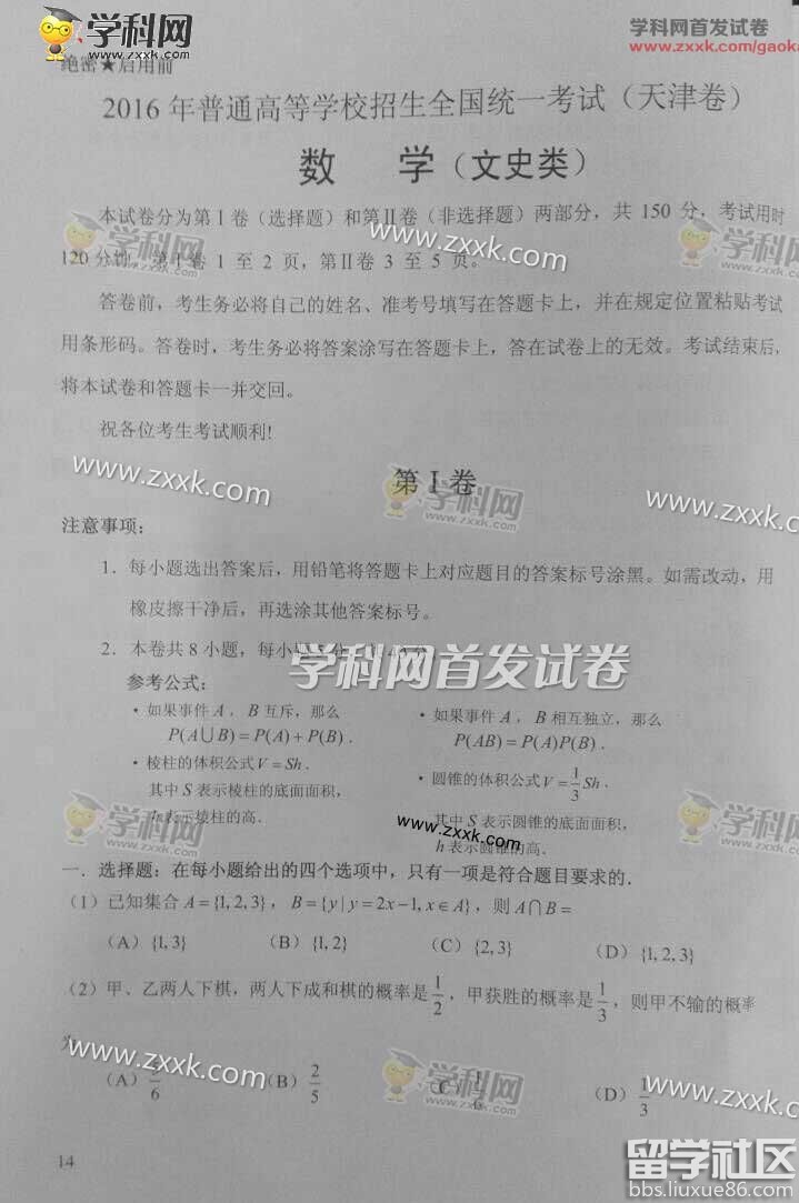 生命的意義從來不拘形式,人生的精彩始終來自堅持。下面是小編整理的2016年天津高考文科數(shù)學(xué)真題及答案(清晰版),更多高考資訊請關(guān)注出國留學(xué)網(wǎng)高考欄目,希望可以幫助大家!