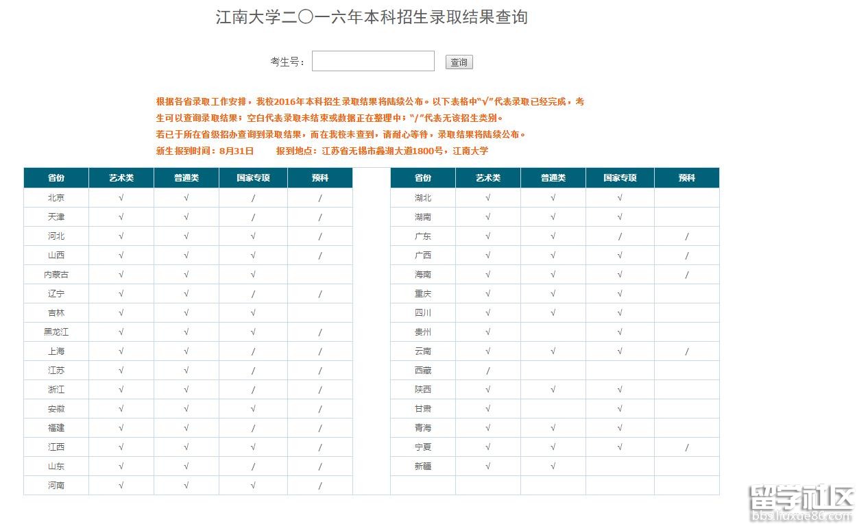 2016江南大學(xué)高考錄取查詢系統(tǒng):http://admission.jiangnan.edu.cn/lqcx/