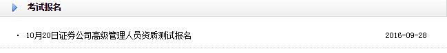 2016年10月高級管理人員資質(zhì)測試報名入口已開通,10月20日測試報名時間:9月29日至10月16日;考試時間:10月20日,主要面向擬任證券經(jīng)營機構(gòu)高級管理人員。