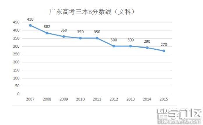 2016廣東高考文科三本分?jǐn)?shù)線B線預(yù)測:286分左右