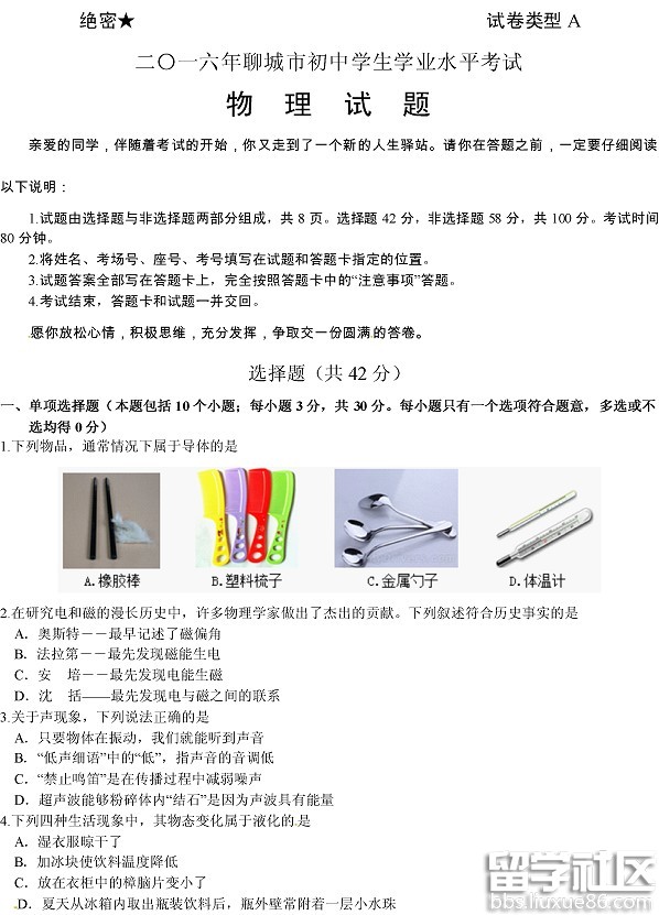 以下是出國(guó)留學(xué)網(wǎng)小編為大家?guī)淼?016年山東聊城中考物理試題(含答案),詳細(xì)內(nèi)容如下,希望能對(duì)大家有所幫助!預(yù)祝各位考生都能取得好的成績(jī)!