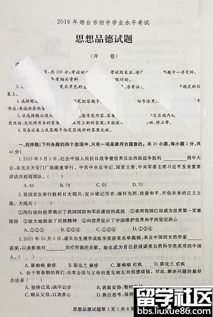 以下是出國留學(xué)網(wǎng)小編為大家?guī)淼?016年山東煙臺中考政治試題(含答案),詳細(xì)內(nèi)容如下,希望能對大家有所幫助!預(yù)祝各位考生都能取得好的成績!