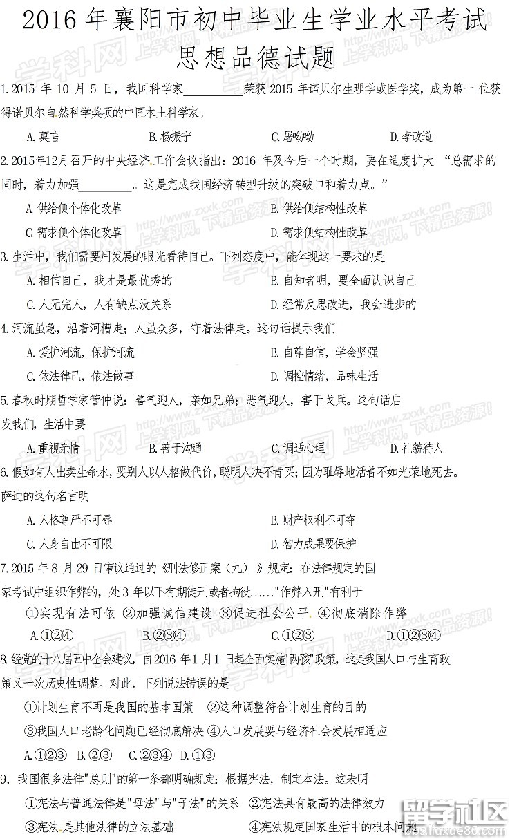 以下是出國留學(xué)網(wǎng)小編為大家?guī)淼暮毕尻?016中考政治試題含答案,詳細(xì)內(nèi)容如下,希望能對(duì)大家有所幫助!預(yù)祝各位考生都能取得好的成績!