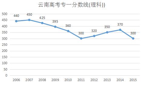云南歷年高考分?jǐn)?shù)線(2006-2015)