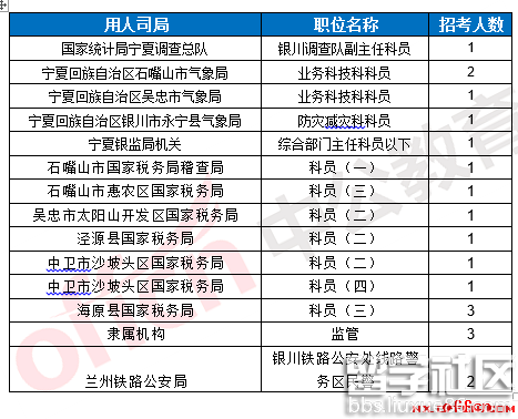 2017國(guó)考寧夏地區(qū)各部門報(bào)考情況