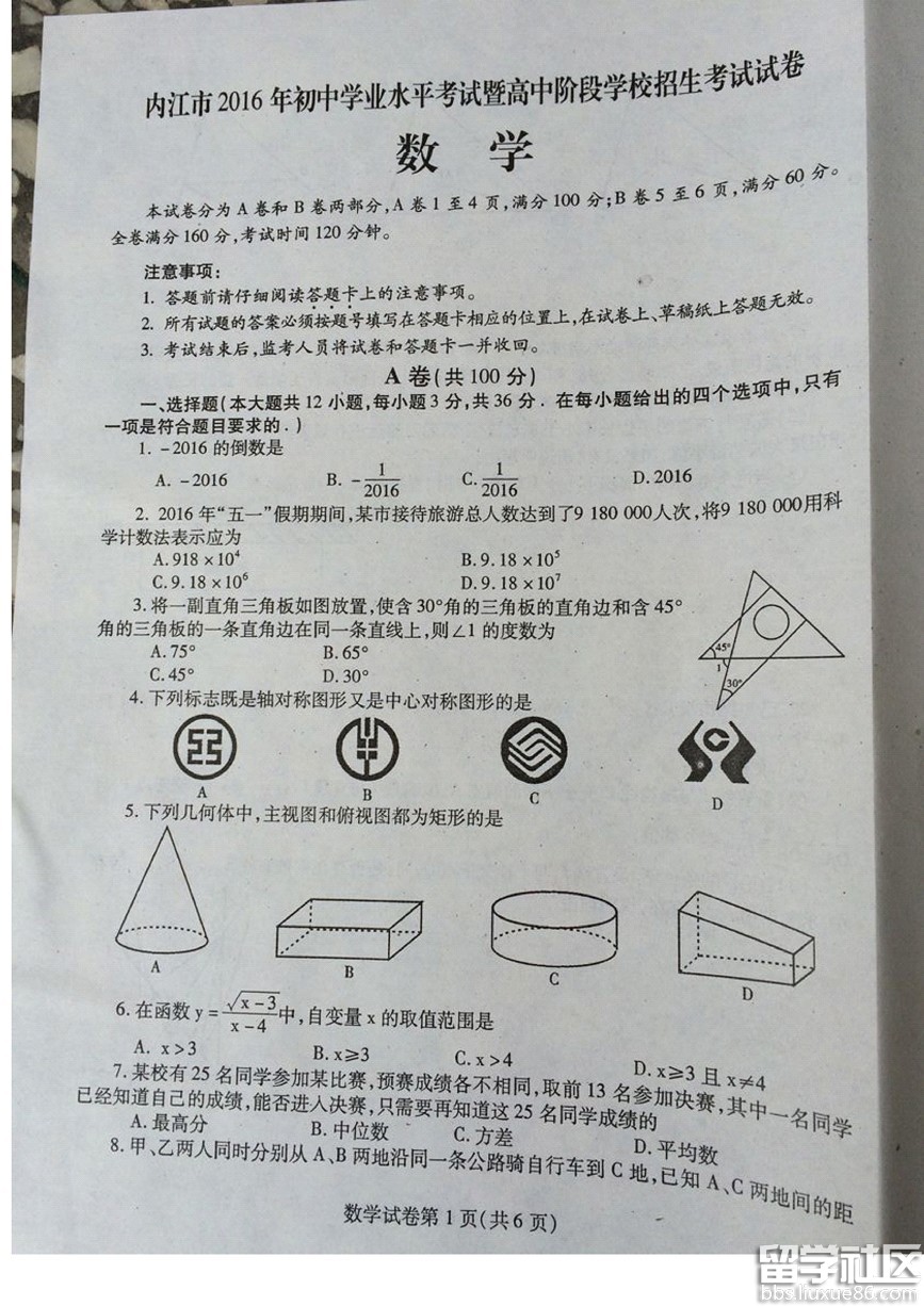 以下是出國(guó)留學(xué)網(wǎng)小編為大家?guī)?lái)的四川內(nèi)江2016中考數(shù)學(xué)試題及答案,詳細(xì)內(nèi)容如下,希望能對(duì)大家有所幫助!預(yù)祝各位考生都能取得好的成績(jī)!