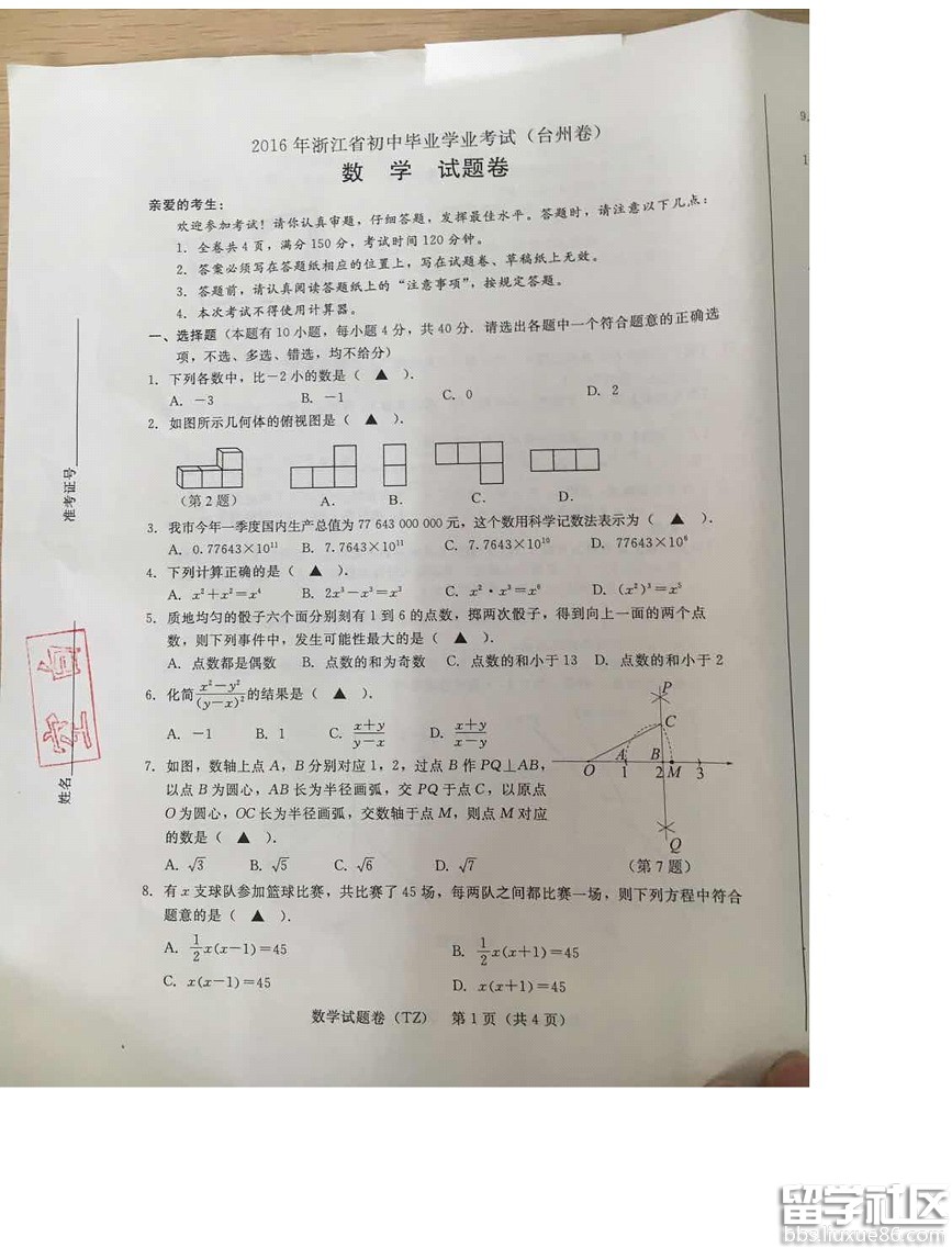 以下是出國留學網(wǎng)小編為大家?guī)淼?016浙江臺州中考數(shù)學試題及答案,詳細內(nèi)容如下,希望能對大家有所幫助!預祝各位考生都能取得好的成績!