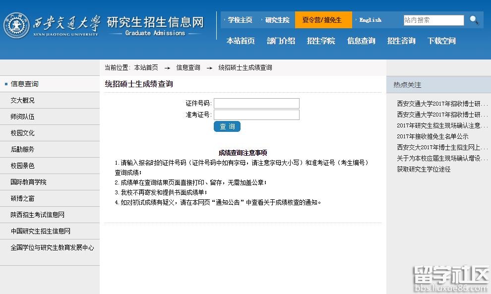 出國留學(xué)網(wǎng)考研網(wǎng)為大家提供2017西安交通大學(xué)考研成績查詢?nèi)肟?,更多考研資訊請關(guān)注我們網(wǎng)站的更新!