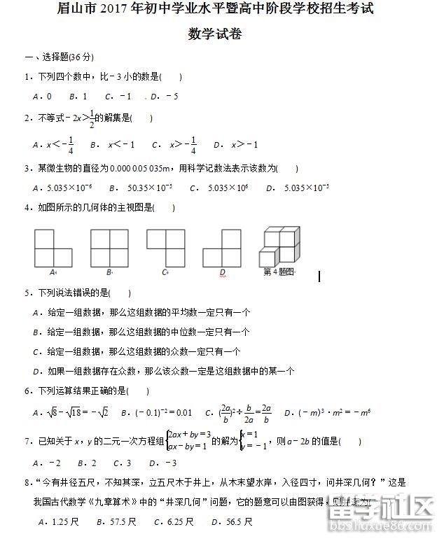 書山有路勤為徑、學(xué)海無涯苦作舟;海到無邊天作岸、山登絕頂我為峰。出國留學(xué)網(wǎng)中考頻道第一時(shí)間整理出[眉山2017年中考數(shù)學(xué)試題附答案(word版)],希望對你有幫助。
