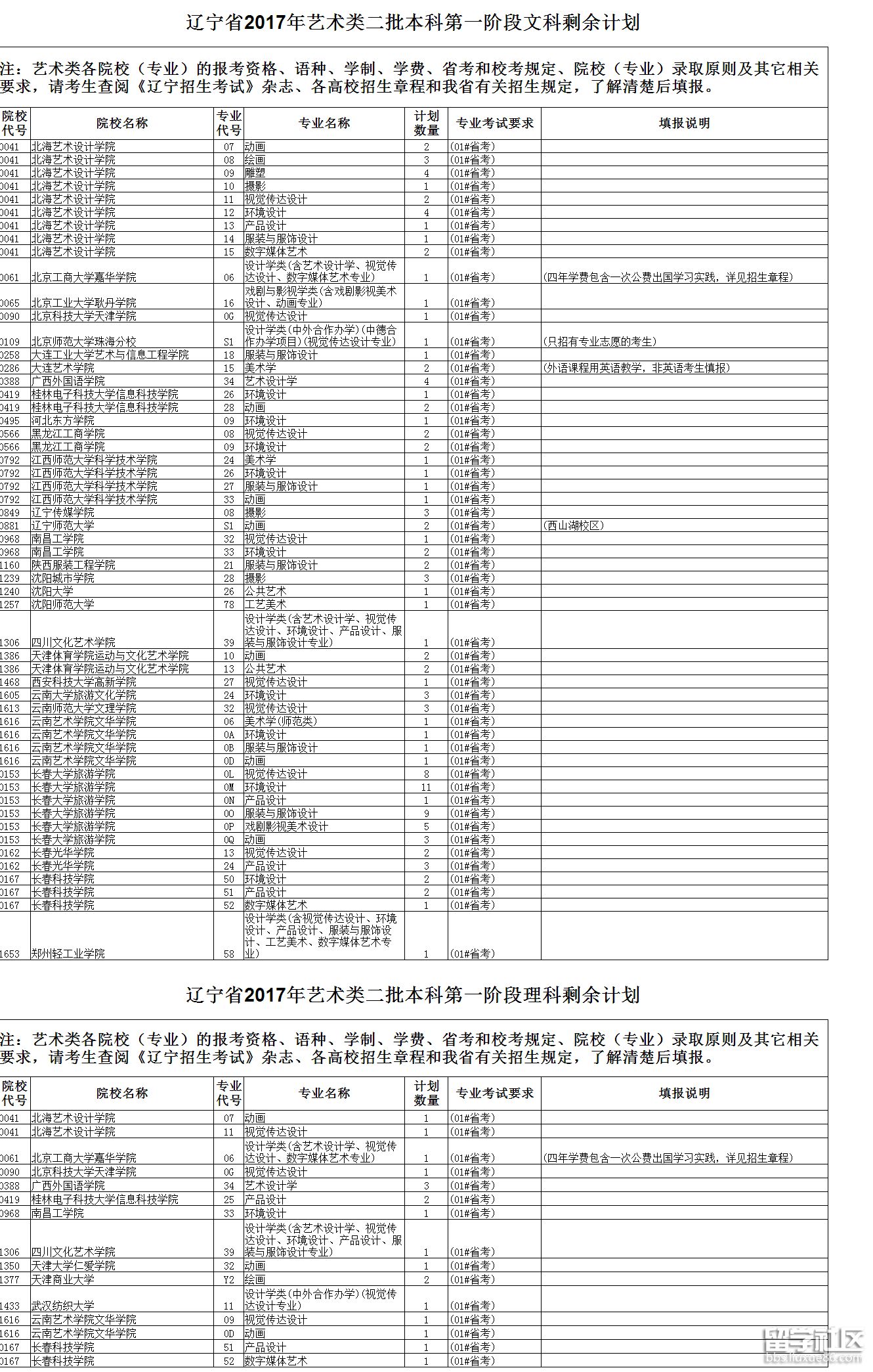2017年遼寧藝術(shù)類本科第二批第一階段錄取院校剩余計劃