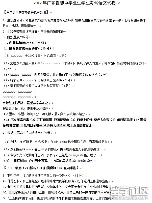 付出終有收獲,努力會有結果,功名成就在即,此刻莫要焦慮,心中會有擔憂,黎明前的節(jié)奏,中考就如行舟,隨風隨水無憂。出國留學網(wǎng)中考欄目為你提供“[廣東中考語文2017年試題及答案]”!更多中考內(nèi)容請持續(xù)關注本站!