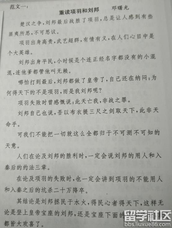 2017高考作文題目預(yù)測(cè)及范文:重讀項(xiàng)羽和劉邦