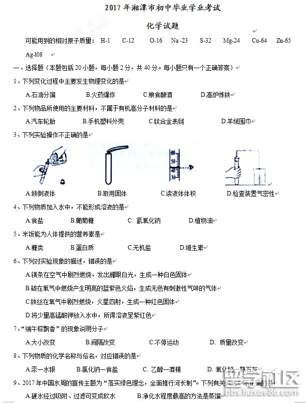 付出終有收獲,努力會有結果,功名成就在即,此刻莫要焦慮,心中會有擔憂,黎明前的節(jié)奏,中考就如行舟,隨風隨水無憂。出國留學網中考欄目為你提供“[2017年湘潭中考化學真題]”!更多中考內容請持續(xù)關注本站!