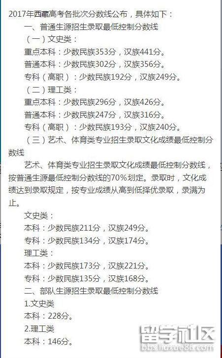 2017西藏高考分?jǐn)?shù)線已公布