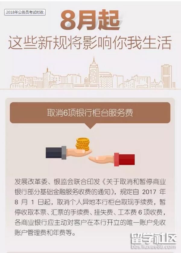 出國留學(xué)網(wǎng)為大家提供“公務(wù)員考試時政:8月起,這些新規(guī)將影響你我生活”供廣大考生參考,在公務(wù)員考試中,命題人歷來是傾向于結(jié)合時政熱點命題,無論是行測常識題、言語理解題,還是申論,都是結(jié)合時事熱點來選擇命題考查點,因此最新時政要有所了解。