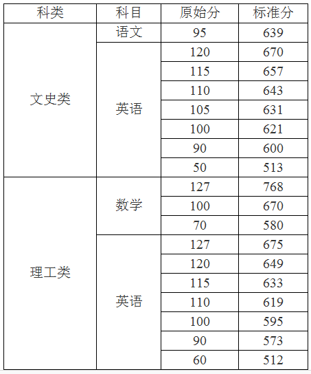 5、個別學(xué)校錄取時,對高考語文、數(shù)學(xué)及英語科目的原始分有要求,現(xiàn)將原始分和標(biāo)準(zhǔn)分的成績對照表公布如下,供考生填報志愿時參考。