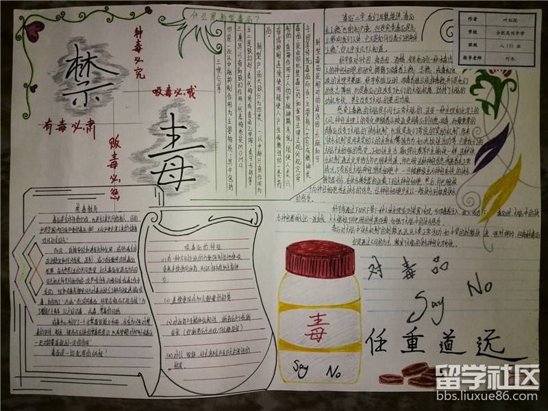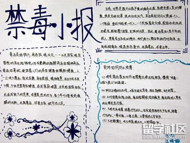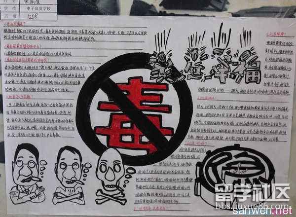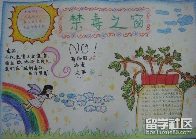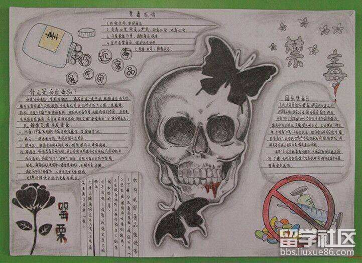 毒品是指鴉片、海洛因、甲基苯丙胺(冰毒)、嗎啡、大麻、可卡因以及國家規(guī)定管制的其他能夠使人形成癮癖的麻醉藥品和精神藥品。不要輕易去嘗試,一旦嘗試你就會離不開,所以為了你自己的安全,請遠離毒品,下面是出國留學(xué)網(wǎng)小編為大家?guī)淼年P(guān)于禁毒的手抄報,謝謝閱讀。