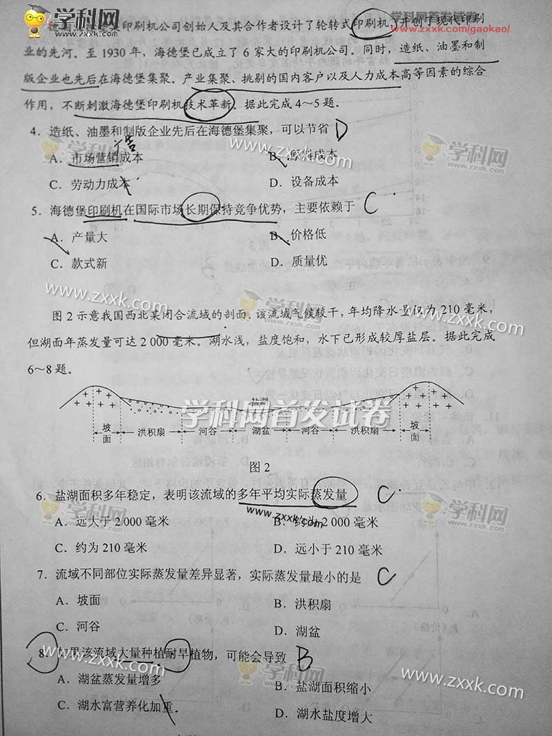 2017南平高考文綜真題及答案(圖片版)