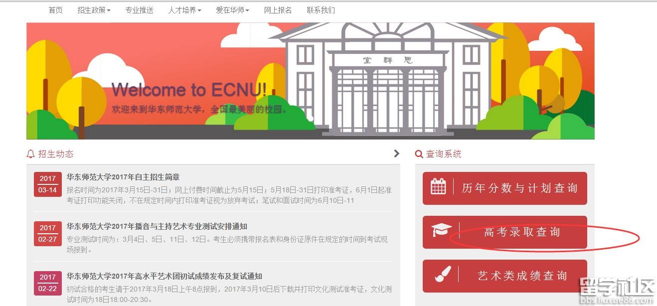 2017華東師范大學(xué)高考錄取查詢系統(tǒng):http://www.zsb.ecnu.edu.cn/webapp/index-new.jsp