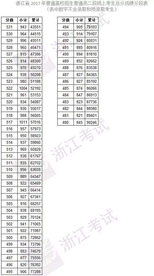 注意:本次公布的總分一分一段表,包含普通類第二段考生與第一段平行志愿未錄取考生;此前已經(jīng)錄取或預(yù)錄取的考生,不參與本表排序。