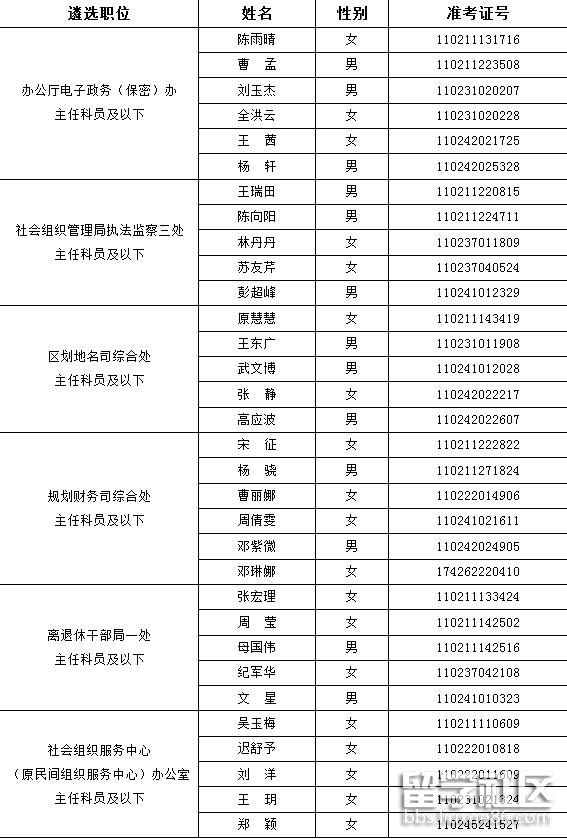 根據(jù)筆試成績由高到低順序,按擬遴選職位與面試人選1:5的比例,確定以下32名考生(按準(zhǔn)考證號升序排列)進入面試: