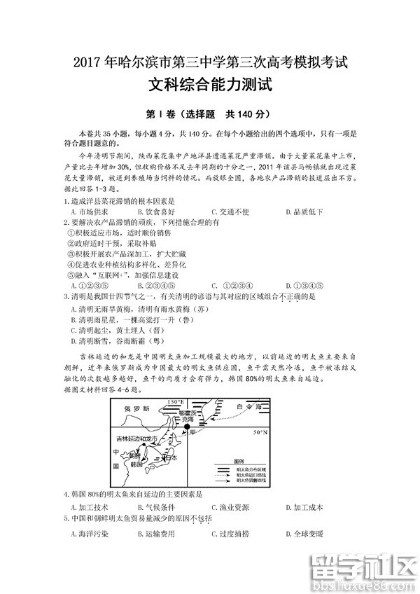 2017哈三中三模已結(jié)束,為方便同學(xué)們復(fù)習(xí),出國(guó)留學(xué)網(wǎng)高考網(wǎng)小編整理了2017哈三中三模文綜試題及答案,供同學(xué)們參考學(xué)習(xí)。