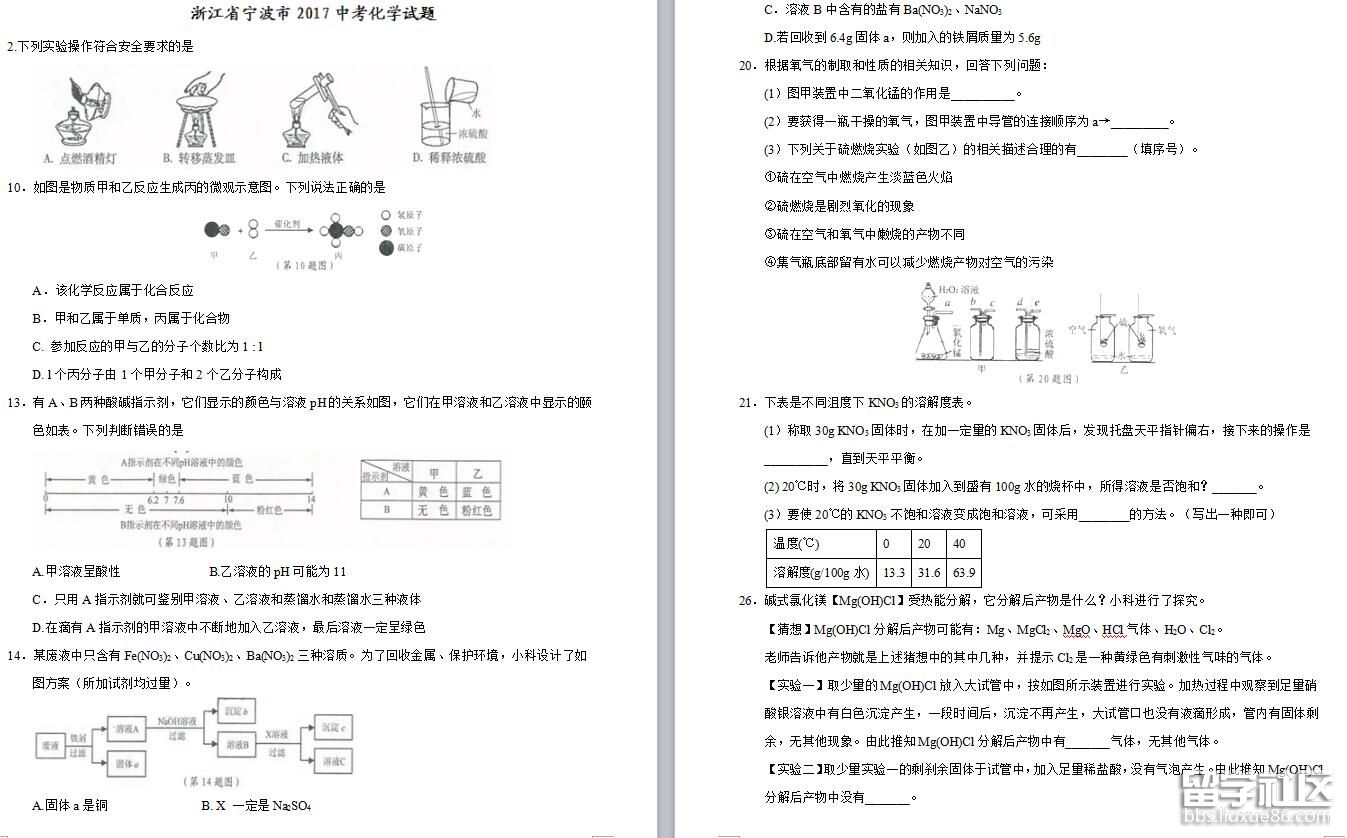 2017年中考,愿你執(zhí)才高八斗生輝筆,飲才思萬千智慧水,帶氣定神閑滿面笑,擁胸中成竹滿懷志,書錦繡嫣然好答卷,定折取桂冠來題名。出國留學(xué)網(wǎng)中考網(wǎng)為大家提供[寧波中考化學(xué)2017年試題及答案(word版)],更多中考資訊請(qǐng)關(guān)注我們網(wǎng)站的更新!
