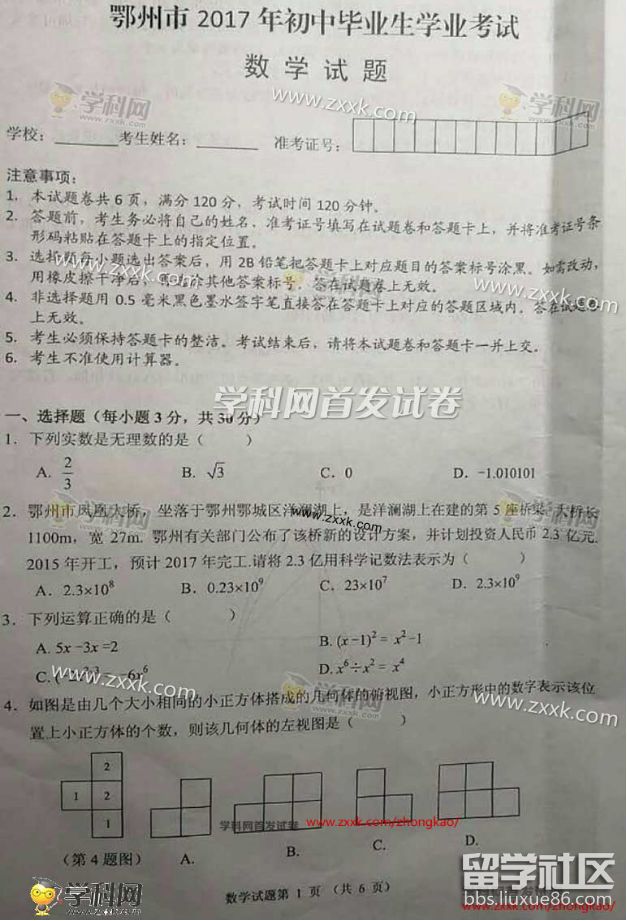 “三年礪劍今日策馬闖雄關,一朝試鋒六月?lián)P眉凱歌旋。”下面是出國留學網為考生們提供的[2017年鄂州中考數(shù)學試卷]。祝各位考生取得優(yōu)異的成績。更多中考資訊請關注中考欄目!