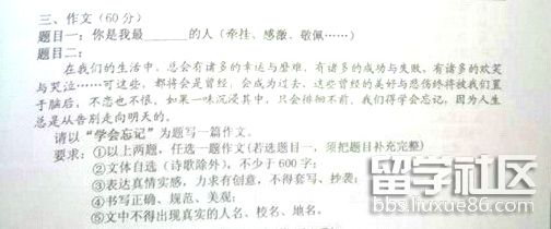 湘西州中考語文作文題有兩個供考生選擇,“你是我最____的人”和學(xué)會忘記 :