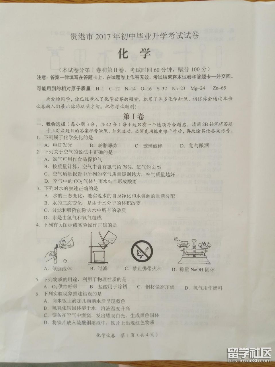 每天都是一個(gè)起點(diǎn),每天都有一點(diǎn)進(jìn)步,每天都有一點(diǎn)收獲。以下內(nèi)容是由出國(guó)留學(xué)網(wǎng)小編為大家收集整理的[2017年貴港中考化學(xué)試題公布],歡迎查看。小編也在此祝各位學(xué)子中考順利!