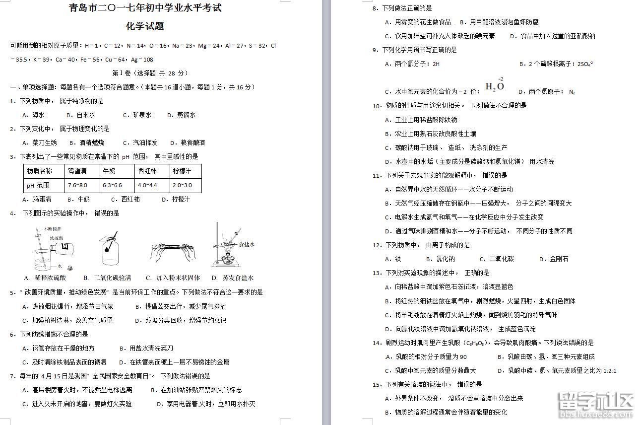 每天都是一個起點(diǎn),每天都有一點(diǎn)進(jìn)步,每天都有一點(diǎn)收獲。以下內(nèi)容是由出國留學(xué)網(wǎng)小編為大家收集整理的[青島2017年中考化學(xué)試題附答案公布],歡迎查看。小編也在此祝各位學(xué)子中考順利!
