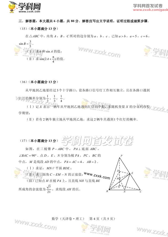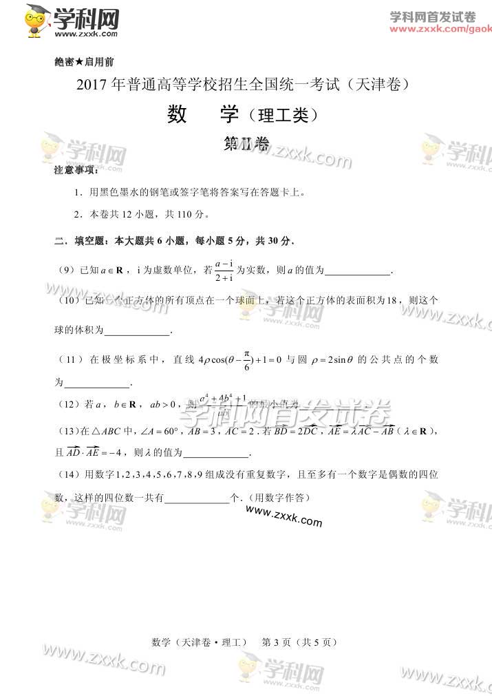 2017年天津高考理科數(shù)學(xué)真題及答案(圖片版)