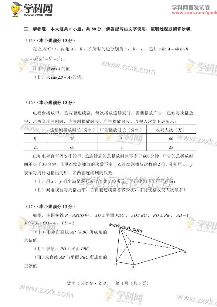 天津高考文科數(shù)學(xué)2017年試卷及答案
