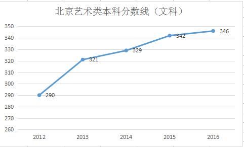 北京高考藝術類本科分數(shù)線(文科)從2012年到2016年高考分數(shù)線一直上升,由歷年高考分數(shù)線可以預測2017年北京高考藝術類本科分數(shù)線(文科)可能上升,預計在346分上下波動。(以上數(shù)據(jù)僅供參考!)