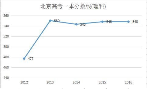 北京高考理科一本分數(shù)線2013年高考分數(shù)線漲到550分,2014年、2015年、2016年基本上趨于穩(wěn)定,由上圖可以預(yù)測2017北京高考理科一本分數(shù)線可能在548分左右浮動。 (以上數(shù)據(jù)僅供參考!)