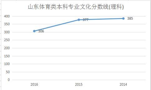 山東省體育類(lèi)本科專(zhuān)業(yè)文化分?jǐn)?shù)線(理)近三年呈現(xiàn)上漲趨勢(shì),由歷年高考分?jǐn)?shù)線分析可知,2017山東省體育類(lèi)本科專(zhuān)業(yè)文化分?jǐn)?shù)線(理)預(yù)計(jì)在385分左右。