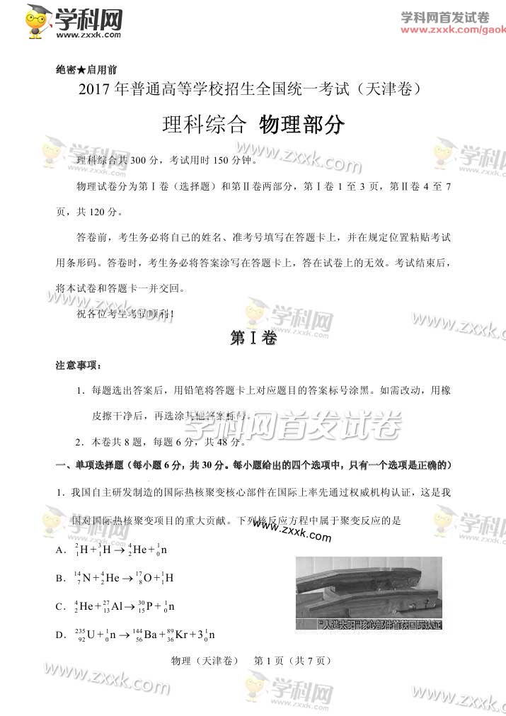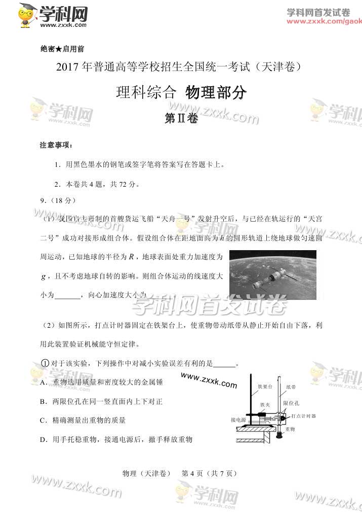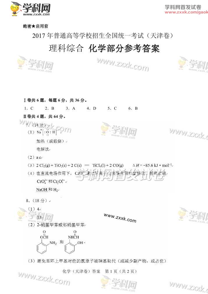 祝愿天下所有高考學(xué)子,愿你們高考考出一個(gè)好成績(jī),考上自己理想的大學(xué),請(qǐng)相信自己,你一定能夠做到的,下面是出國(guó)留學(xué)網(wǎng)高考欄目為您帶來“天津高考2017年理綜試題及答案”,如果需要更多高考資訊請(qǐng)關(guān)注本站。