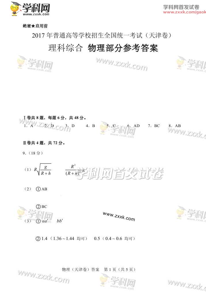 | 天津高考語(yǔ)文答案 | 天津高考數(shù)學(xué)答案 | 天津高考英語(yǔ)答案 | 天津高考理綜答案 | 天津高考文綜答案 |