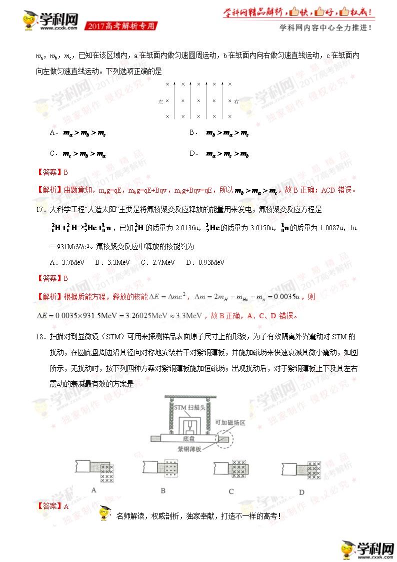 2017年南昌高考理綜真題及答案解析