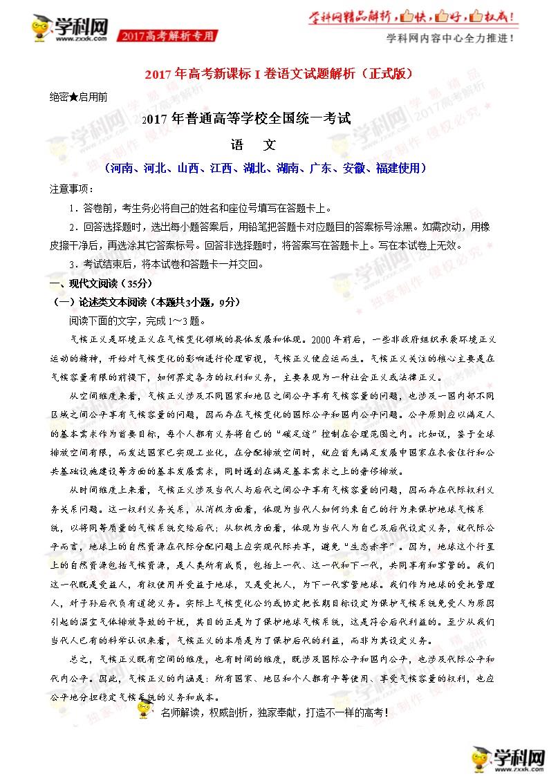 2017年高考全國卷1語文適用地區(qū):河南、河北、山西、江西、湖北、湖南、廣東、安徽、福建