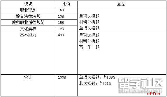 本文“教師綜合素質(zhì)考試知識點分布及備考建議”由出國留學(xué)網(wǎng)教師資格考試網(wǎng)整理而出,希望能幫到你!